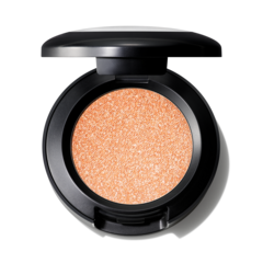 - Cubre los ojos con shimmer blanco-rosado usando Glitter Eye Shadow in Shine De-Light, y define la línea inferior de las pestañas con el tono Tip-Taupe Shade de la M·A·Cnificent Eye Shadow Palette, exclusiva de Holiday.